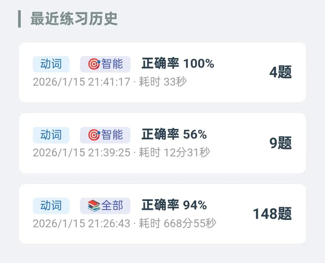 3. 答题历史统计,可以便捷地查询做题时长、正确率等。