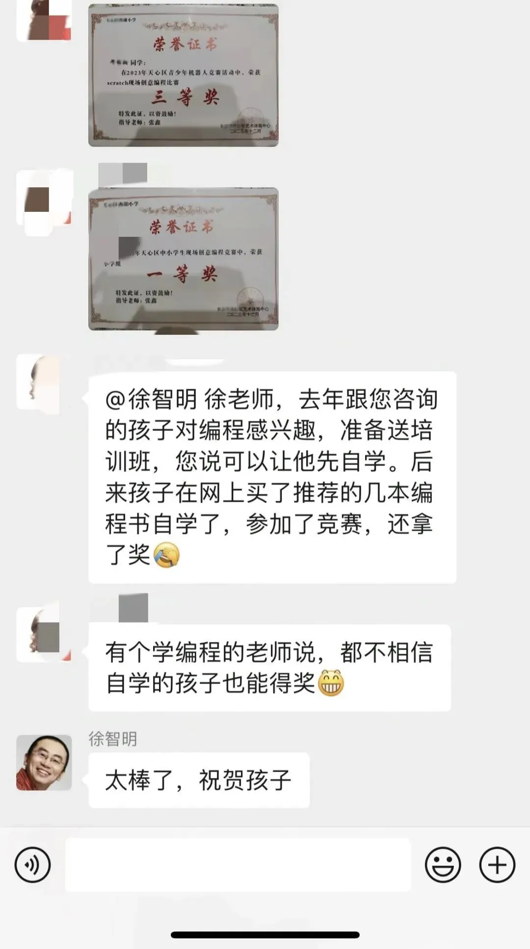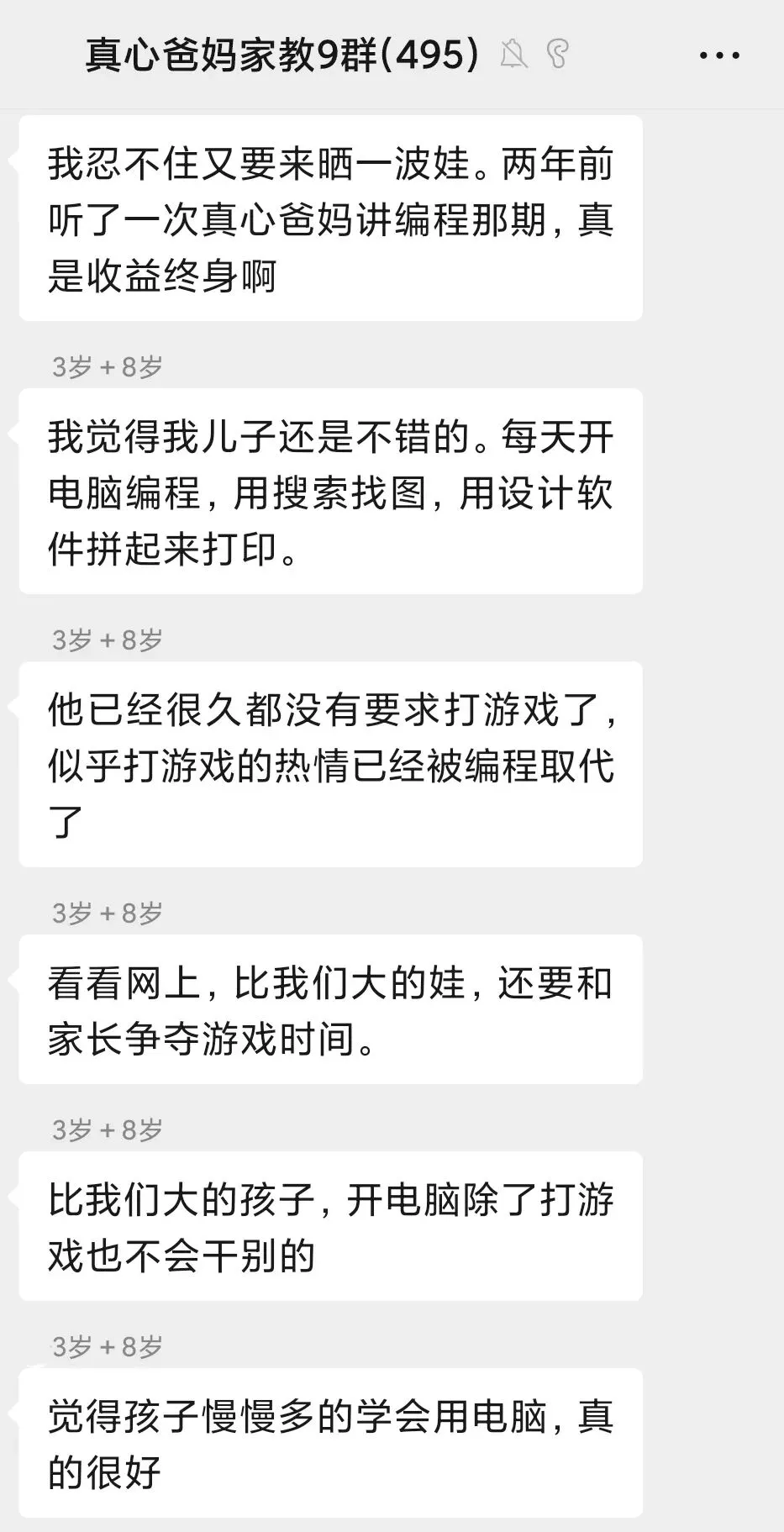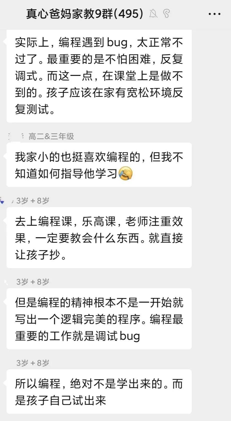 孩子可以看书学编程吗?是不是编程必须报班儿才能学?看下面我们社群里的几个讨论截图: