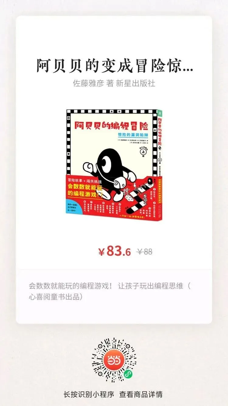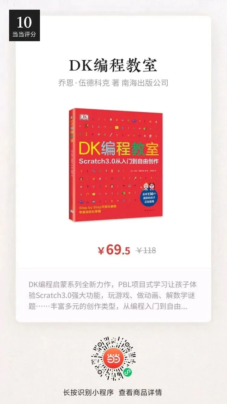 编程:编写计算机程序。程序:计算机为了完成某项任务而执行的一套指令。更多基本术语可以在大多数编程启蒙读物的附录中找到。建立初步的认知;孩子并不需要马上开始专业的学习;孩子并不适合很早开始专业的学习;初步接触启蒙读物之后,如果非常有兴趣,有种类丰富的专门读物可以选择。编程学习-需要使用电脑进行实际操作。目前主要有基于Scratch和基于Python两种类型。Scratch——一种图形化编程语言,由麻省理工学院的“终身幼儿园团队”设计,被广泛用于教育领域以教授编程概念。Scratch专门面向年轻的、没有编程经验的学生允许用户,通过拖放编程块来创建故事、游戏和动画,无需书写传统的代码文本。这种设计让学生能够专注于逻辑和计算思维的发展而非语法的复杂性,有效降低了学习编程的门槛。Python——由荷兰国家数学与计算机科学研究中心的吉多·范罗苏姆于1990年代初设计, 已经成为最受欢迎的程序设计语言之一,在各个编程语言中比较适合新手学习。图解,更形象、直观,适合孩子阅读、理解。趣味练习,帮助孩子通过一个有趣的小项目实践所学。全学科读物三大类型:科学认知 / 社会认识 / 学习能力发展。学习能力发展读物:孩子可以通过阅读它们进行一些项目的学习实践、一些思维能力的实际运用,从而有效发展学习能力的读物。编程启蒙读物:科学认知,计算机程序的编码和运行、背后的科学原理、思维方式、工作方法。学习能力发展,自学能力 & 编程思维。编程思维:一种解决问题的思维方式。需要识别出需要解决的问题;把问题题拆解成可执行的步骤;设计每一步骤的解决路径;最后解决整个问题并验证结果。对孩子来说,学习编程最重要的不是掌握某种计算机语言,学会编写程序的技巧,为未来做计算机程序员做准备,而是培养编程思维。孩子学习编程思维的收获:逻辑思维能力、解决问题的能力、想象力、决策力、执行力、创造力、更好地解决他在生活和学习中遇到的问题。看孩子自己的兴趣,编程不是非学不可,编程启蒙读物也不是非读不可。自学能力:可以通过阅读其他类型学习能力读物发展。编程思维:可以通过离线的编程思维启蒙读物发展,不一定要实际学习具体项目。阅读编程启蒙读物——自己学。上编程兴趣班——等人教。时间:自学更灵活、更省时间。金钱:看书自学更经济(不是所有的项目都需要花钱报班)。孩子愿意接触到什么程度就到什么程度。别功利,别好高骛远。世界上有很多程序员,但不是每个孩子都需要成为程序员。孩子自己读;孩子自己探索操作;父母提供必要的条件,比如电脑;父母懂——可以帮助答疑,但不用主动辅导;父母不懂,帮助孩子学会在书中找答案。1、《DK我的第一本编程思维启蒙书》(5-6岁)-不需使用电脑[美]奇奇·普罗特斯曼著,国家开放大学出版社国开童媒出品。互动立体离线编程启蒙书——用拼图、迷宫等有趣的场景游戏设置、 翻翻页,抽拉条,滑轮等纸艺工程,帮孩子理解序列、算法、漏洞修复等基本的编程概念,并亲自动手操作离线编码。“拉一拉”——调整顺序和步骤;“翻一翻”——做选择,掌握条件语句;“转一转”——认识变量,随机应变存储数据。大量图形辅助,简明易懂,零基础的孩子也可以轻松学习。书后附有编程词汇表,帮助孩子确切理解基本概念。奇奇是一位计算机科学教育家,同时也是一位编程作家。定价108元,售价54元。 2、《5岁开始的编程课》(套装全6册)(5-6岁)-不需使用电脑凯特琳·西乌等, 中信童书出品。加拿大儿童认知学家、幼儿编程专家根据孩子的思维发展规律设计。欢乐的机器人故事,贴近孩子生活,充满童趣,从0到1帮孩子掌握编程思维。纸上趣味练习小游戏,让孩子学会举一反三,沉浸式理解编程。不用开电脑,不用辅导班,家长不懂也能学会。六大基础编程思维,也是一套分析问题、解决问题的高效方法:《忙乱的开学日》——排序思维 ;《寻找水花公园》——算法思维;《建造神奇树屋》——循环思维 ;《生日聚会要泡汤》——分支思维;《图书馆奇遇》——变量思维;《跑调的机器人乐队 》——分解思维。(售罄,可以到二手书网站找找看) 3、《孩子一看就懂的编程启蒙书》(全6册套装)5-6岁-不需电脑[英] 施特菲·卡维尔-克拉等,河北少年儿童出版社出版。英国很受欢迎的编程启蒙书,涵盖计算机工作原理、网络安全、编程、数字技术、计算机语言、数据库六大主题,用孩子能看懂的文字和生动的图例,阐释了算法、程序、数据等60多个知识点。扁平化设计风格,加上活泼的图案、一目了然的图例,文字通俗易懂,主题循序渐进,孩子一看就懂。《这就是计算机》 《我们身边的数字技术》《网络安全很重要吗?》《编程,原来如此!》《不同的计算机语言》 《数据库的大作用》。 4、《孩子看的编程启蒙书》(全8册)(5-10岁)-不需电脑[日] 松田孝 著,青岛出版社出版。一套没有任何编程基础的孩子都能看懂的趣味编程思维养成书,获得“日本学校图书馆出版奖”。从常见生活情境入手,设计多种有趣的编程游戏,让孩子边学边玩,零基础理解算法、学习编程思维。全8册,前4本主要讲算法——《算法原来是这样的》 《掌握常用的算法》《用流程图描绘生活》 《有趣的算法游戏》。通过有趣的算法游戏,帮助孩子了解算法的基本知识,养成基本的编程思
