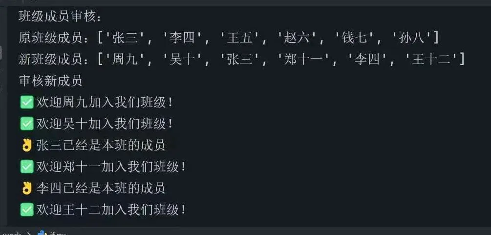 创建一个班级成员的管理,演示检查新成员是否已经在原班级中