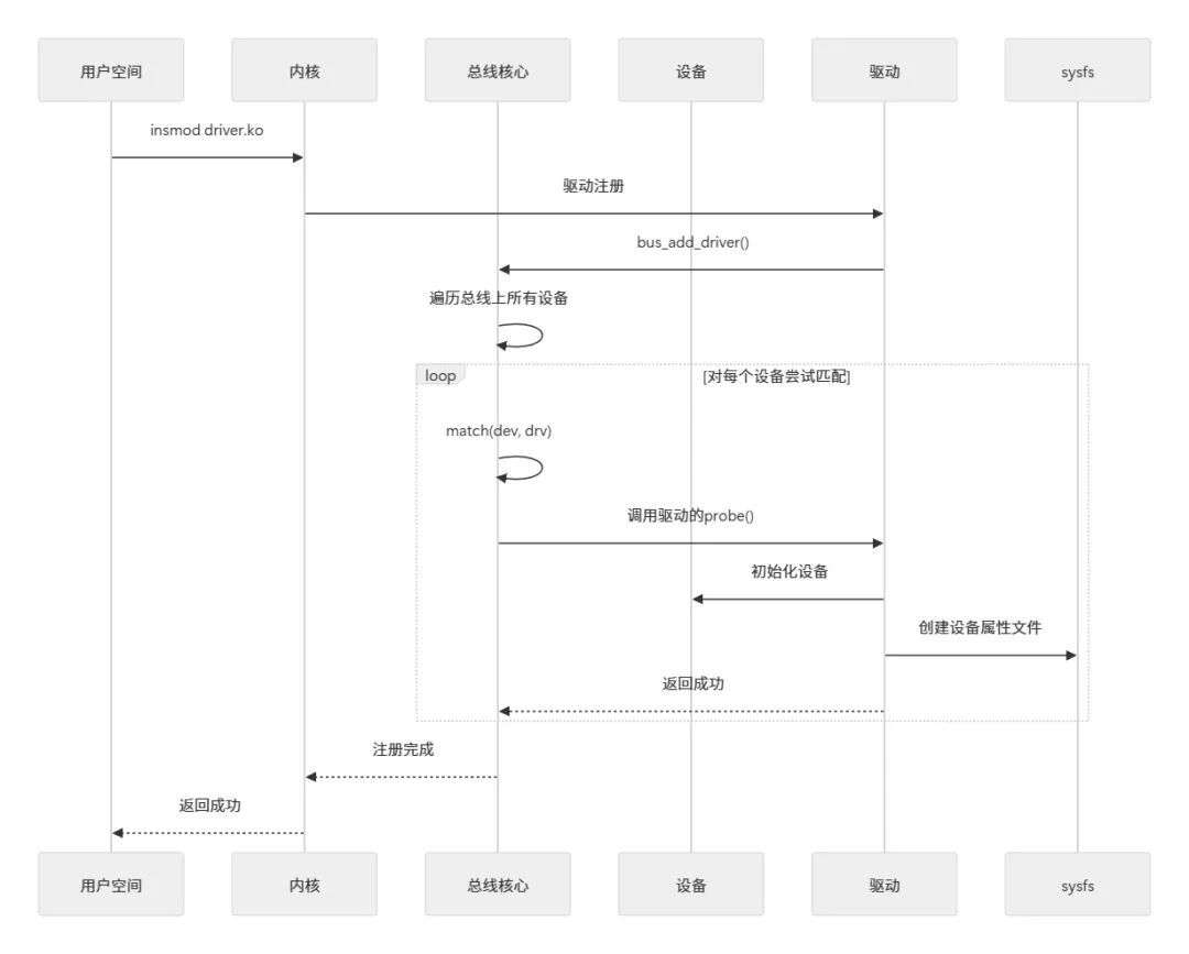 };总线是设备驱动模型中最关键的"媒人", 负责设备与驱动的匹配