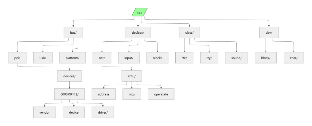 sysfs是内核对象到用户空间的桥梁, 将内核数据结构映射为文件系统