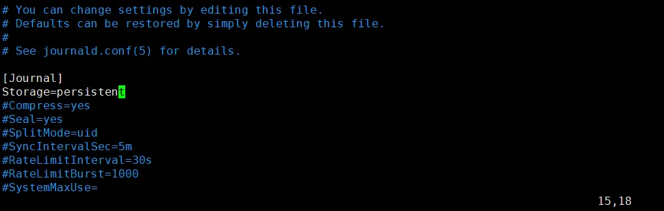 编辑 /etc/systemd/journald.conf,确保 Storage= 选项设置为 persistent(永久存储):