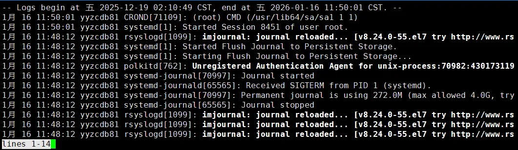 [root@yyzcdb81 ~]# journalctl --list-boots