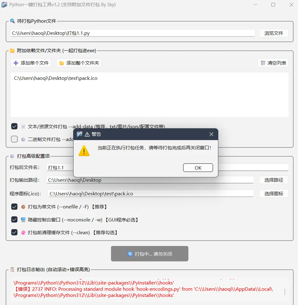 ✔️ 模式 B:--add-binary 【适用于二进制文件,如 dll】打包二进制依赖文件专用,和--add-data用法一致。