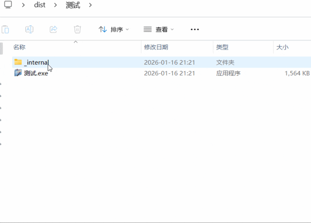 打包完成后,在 dist 目录里会看到一个_internal文件夹,打开后:你的文件 就可以看到;