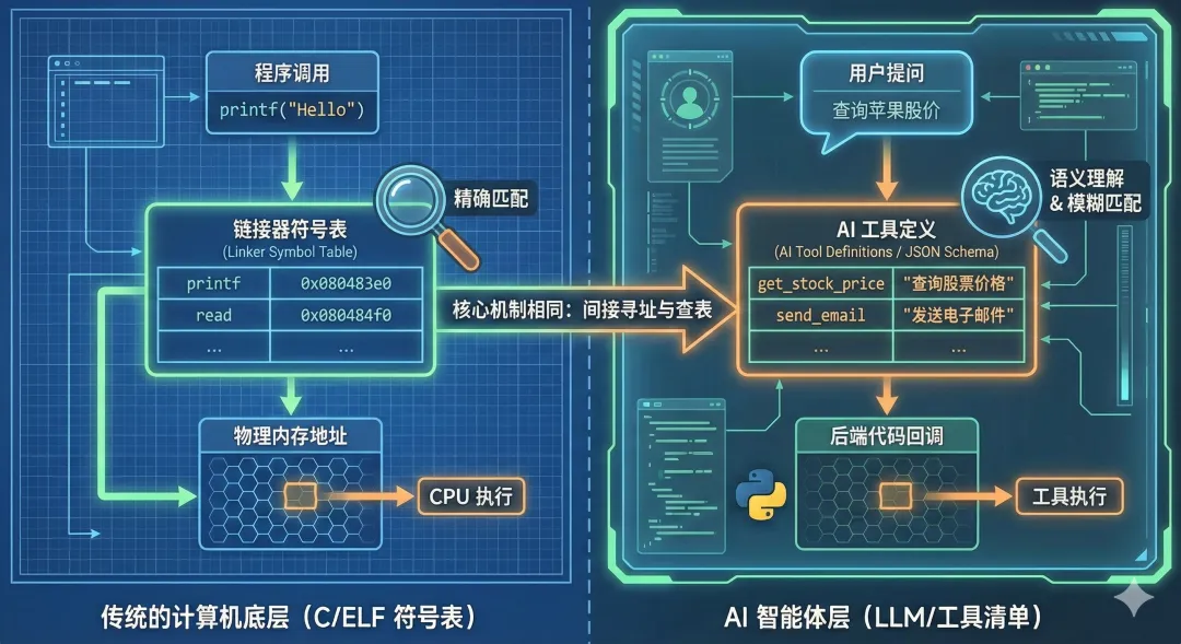 摘要: 当我们在构建 AI Agent 时,总觉得那种“分层查找工具”的感觉似曾相识。没错,你的直觉是对的。这不就是写 C 语言时的 ELF 符号表吗?本文带你从底层视角,看穿 AI 架构的本质。