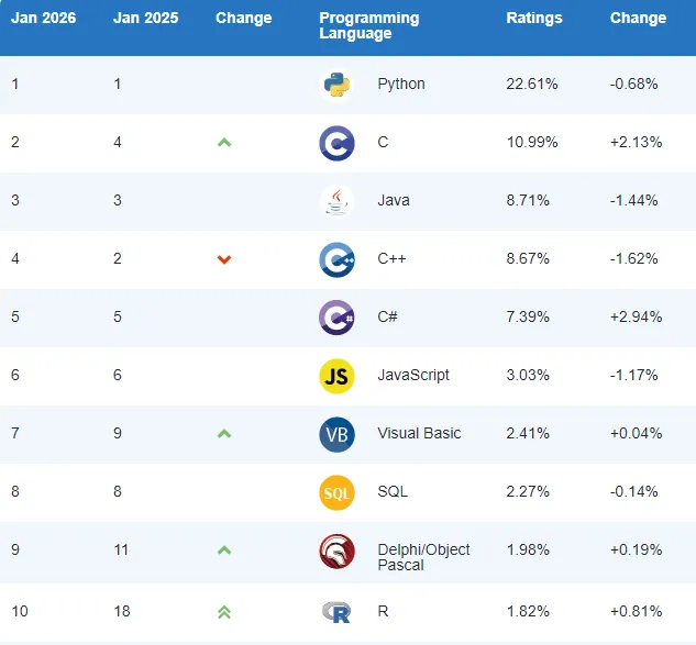 如果你还没有明确的编程方向, 可以参考下TIOBE发布的编程语言排行,参考下大众的选择,不妨“随波逐流”