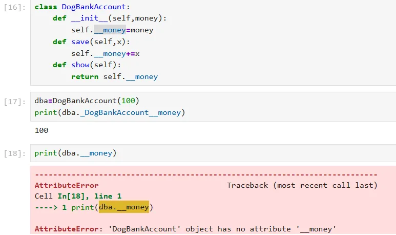 私有属性改变靠名字改写:__x → _类名__x ,满足一些特别的需要。在这里将变量增加为__money。