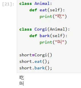 从代码中可以看到Corgi继承了Animal,实例化Corgi后,可以使用Animal的方法。