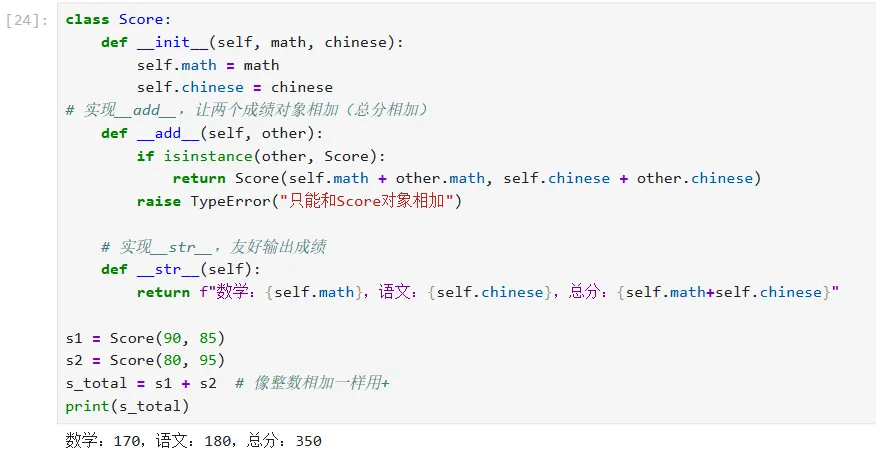 # 实现__add__,让两个成绩对象相加(总分相加)
