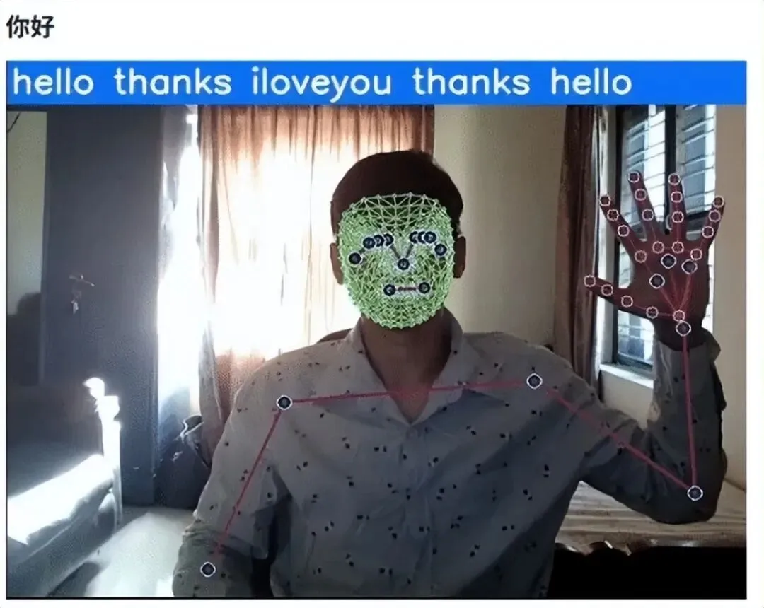 在数据收集过程中,本研究选取了三个基础手语词汇:“Hello”(你好)、“Thanks”(感谢)和“I Love You”(我爱你)。为了确保数据的多样性和丰富性,用户针对每个词汇分别摆出姿势,每个词汇采集 30 个序列,每个序列包含 30 帧图像,从而总共收集到 90 个序列的数据。