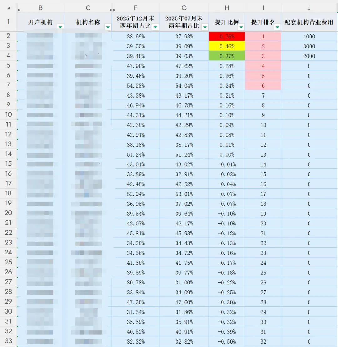 这一提升比例的计算本质上是将终点日期的两年期占比减去起点日期的占比,并以百分比形式呈现,这与数学定义中的提升比例变量直接关联,为后续的奖项评定提供了量化基础。