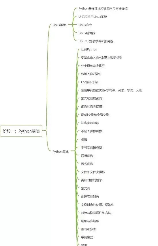 Python基础主要分为Linux基础和Python基础两大块,旨在学习Python开发环境和Python基础语法,以及了解面向对象编程的基础知识。