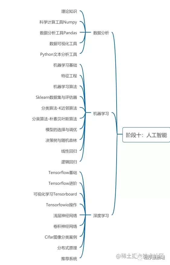 这一阶段可以从数据分析、机器学习和深度学习三部分延伸学习,包括基础知识、工具、原理、练习等多方面入手。