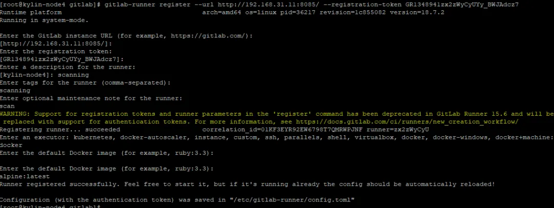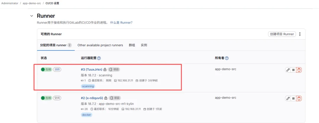 GitLab Runner 注册执行器为docker,是因为gitlab内置的代码扫描工具Semgrep需要使用它,可以在同一个节点上注册多个runner,方法和结果如下图👉 2、安装镜像扫描工具(gitlab内置的镜像扫描工具就是基于trivy命令封装的)