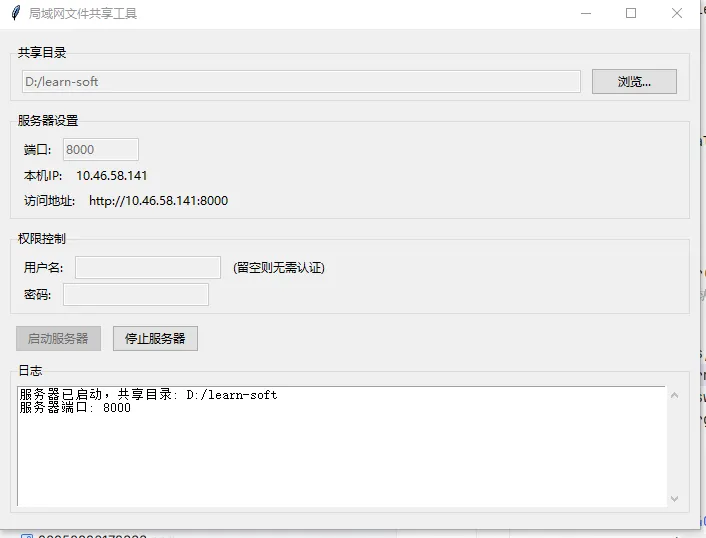 classFileSharingServer:def__init__(self, gui): self.gui = gui # 回调 GUI 写日志 self.server = None# socketserver.TCPServer 实例 self.server_thread = None# 子线程句柄 self.running = False# 状态机:跑 or 躺accept() 的 TCP 服务器。start() 方法defstart(self, directory, port, username, password):if self.running:returnFalse os.chdir(directory) # 切换到共享目录,后续 SimpleHTTPRequestHandler 直接读文件 handler_class = partial( AuthHTTPRequestHandler, username=username orNone, password=password orNone ) socketserver.TCPServer.allow_reuse_address = Truetry: self.server = socketserver.TCPServer(("", port), handler_class) self.server.log_callback = self.gui.add_log # 打通日志 ...partial:把 username、password 提前塞进 AuthHTTPRequestHandler 的构造函数,优雅省事。allow_reuse_address = True:防止“端口被占用”惨案。stop() 方法defstop(self):if self.running and self.server: self.server.shutdown() # 停止 serve_forever self.server.server_close() # 关 socket self.running = False self.server_thread.join() # 等线程优雅退出shutdown() 会跳出 serve_forever 的循环,线程自然结束。def__init__(self, *args, username=None, password=None, **kwargs): self.username = username self.password = password super().__init__(*args, **kwargs)do_GET 要用。defdo_AUTHHEAD(self): self.send_response(401) self.send_header('WWW-Authenticate', 'Basic realm="File Sharing"') self.send_header('Content-type', 'text/html') self.end_headers()WWW-Authenticate 头就会弹登录框。defdo_GET(self):if self.username and self.password: auth_header = self.headers.get('Authorization')ifnot auth_header: self.do_AUTHHEAD(); return auth_type, auth_data = auth_header.split(maxsplit=1)if auth_type.lower() != 'basic': self.do_AUTHHEAD(); return username, password = base64.b64decode(auth_data).decode().split(':', 1)if username != self.username or password != self.password: self.do_AUTHHEAD(); return# 认证通过,父类接管 super().do_GET()deflog_message(self, fmt, *args):if hasattr(self.server, 'log_callback'): self.server.log_callback(fmt % args)def__init__(self, root): self.root = root self.root.title("局域网文件共享工具") self.root.geometry("700x500") self.server = FileSharingServer(self) # 创建发动机用 ttk.LabelFrame 把界面切成四大块: