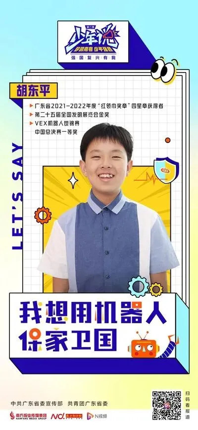 “这份荣誉不仅属于我个人,更是对所有不懈努力、勇于探索、心怀家国的青少年的集体礼赞。”近日,在2025年广东“新时代好少年”先进事迹发布活动上,华南师范大学附属中学五山校区初三年级学生胡东平作为全国“新时代好少年”入选代表登台,他用一个个充满温度的科创项目,诠释着新时代少年的责任与担当。