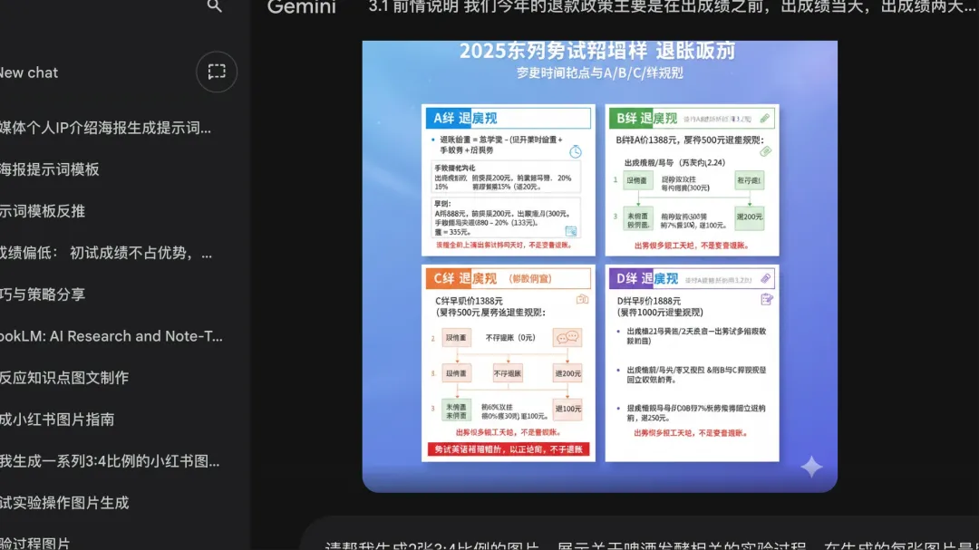 然后我这一天就感觉像是在做实验一样,各种尝试,想要让他帮我去生成不同的一些图,无论是这种实验过程的展示,还是像上面这种直接的知识点相关的卡片,又或者是之前我们这边同学写过的经验帖,让他去生成图片的格式,我都在进行尝试。