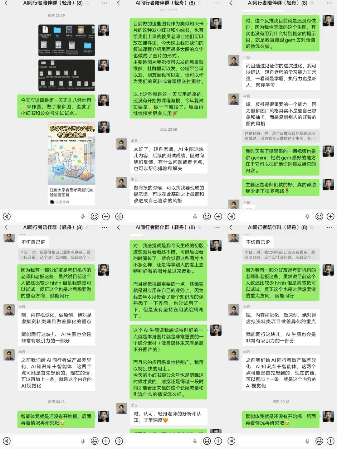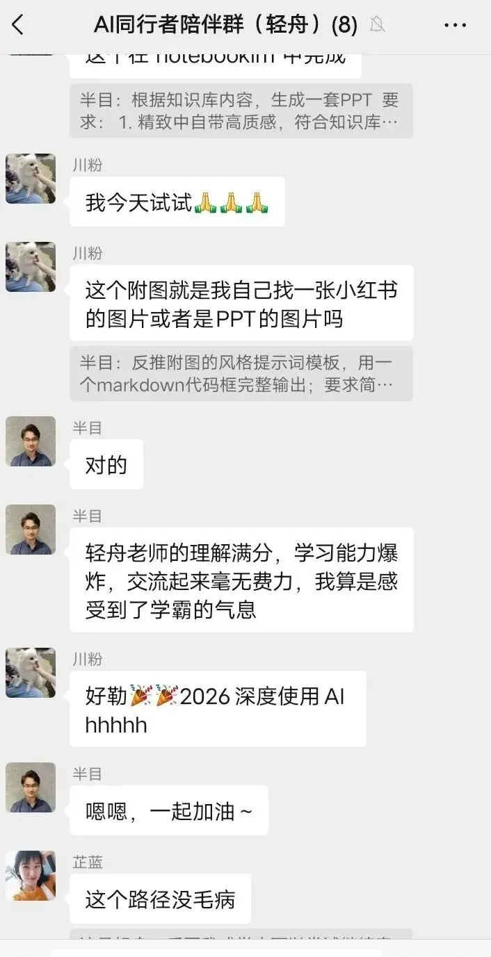 1.14 晚上我也是在我们的AI同行者陪伴群里给老师们去汇报了一下我这一整天深度使用AI作图的情况与感受。