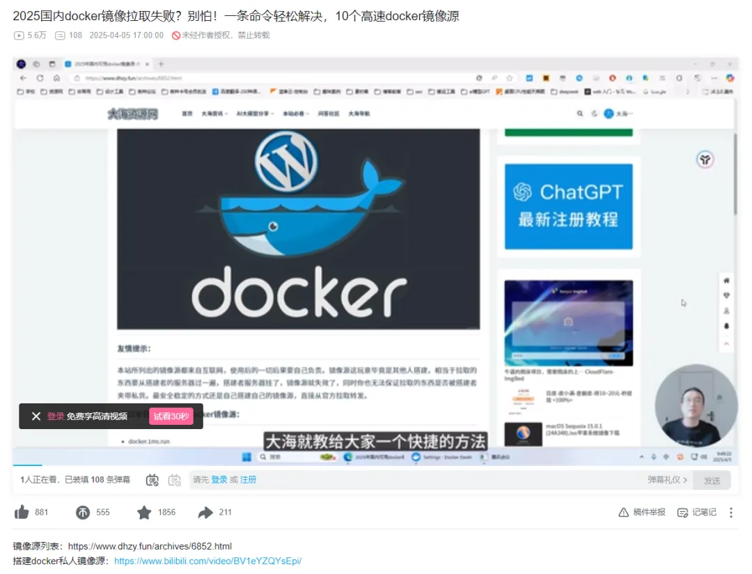 本人写代码苦手,真正有过写代码经历的不过两三个月,写得还是最简单的前端页面那种,文科生背景,在AI辅助编程出来后以为自己的编程水平在各位AI老师的指引下会突飞猛进,真正结合具体实现用了一次,发现想太美了。个人感觉AI辅助编程不是给小白用的,是给有着两三年编程经验的人用的,或者说在他们手中发挥的效果更好,小白用着用着没有自己的思考就容易被带进沟里面去。之前在微博上关注了一个科技博主,推荐了一个画廊框架,Afilmory,当时看了介绍很心动,准备趁着有空就顺带把自己过往的照片借助这个框架把照片放网上,还租了一年的阿里云服务器,但是奈何本人技术实在太菜,没跑起来,总是出现莫名其妙的bug,换了一个摄影展示框架,Photoview,运气好,开发的也确实好上手,七搞八搞弄成了。之间也用chatGPT辅助编程了一下,说是辅助基本上就是来回复制粘贴,这服务器上显示什么就粘贴到chatGPT对话框中,chatGPT给啥代码就粘贴进去,就这么来来回回,跑通挂载好了,唯一的卡点是docker 镜像拉取photoview这个项目时,拉取不了,卡个一两次慢慢展开解决是理想状态,卡个三四次报同样的错误那不就是死循环了么,好在知道问题是啥,针对不好拉取镜像在B站搜到了一个教学视频,给了解决教程,其实就是一行代码的事情,在拉取的镜像前面加一个好使的镜像网址就行。感谢大海资源,没有老哥这个教程视频,估计就不了了之了。选的是docker.1ms.run这个镜像源,挺快的,挺好使的。docker pull docker.1ms.run/photoview/photoview:latest