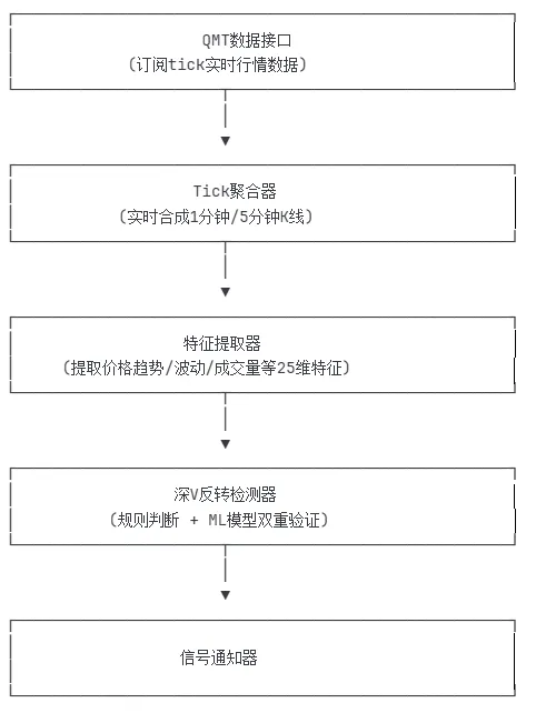 ✅ 基于QMT接口实时获取tick数据✅ 自动聚合成1/5分钟K线✅ 机器学习模型实时识别反转形态✅ 信息推送提醒