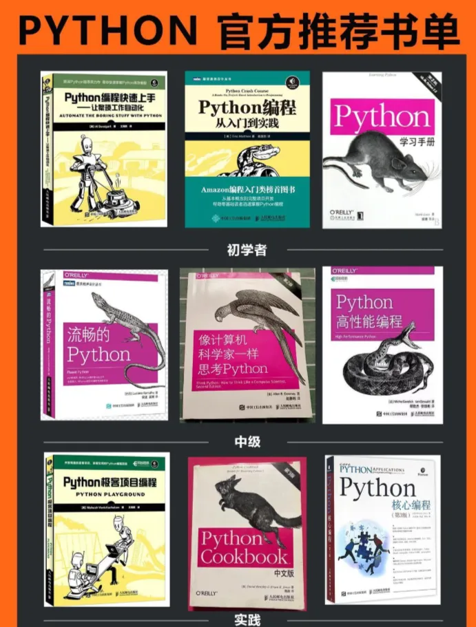 中级掌握:《流畅的Python》《像计算机科学家一样思考Python》《Python高性能编程》