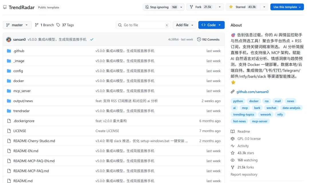 Hi我是陈宝,最近在 GitHub 上发现了一个超级好用的全网热点抓取工具——TrendRadar。它能自动监控各大平台的热搜,按照我设定的关键词过滤,然后推送到我的邮箱上。