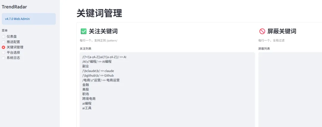 这个项目我可以做一个可视化界面来设置各种推送方式,需要推送的关键词和屏蔽的关键词,还有推送时间启动等所有功能