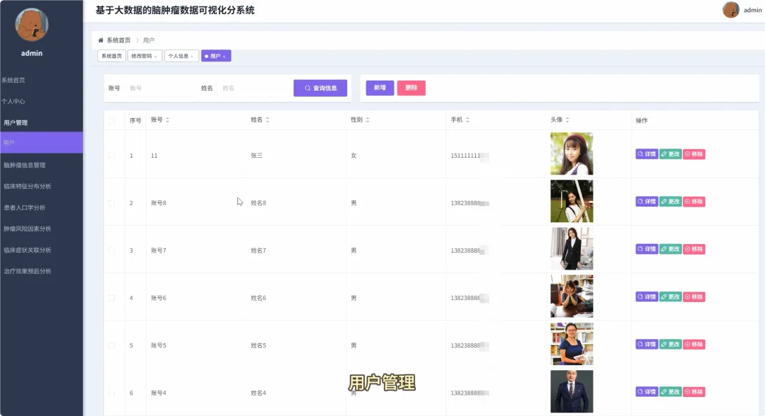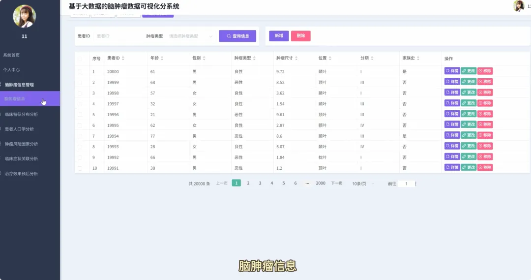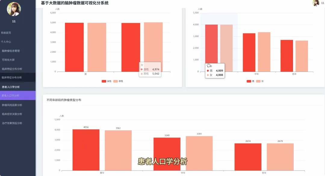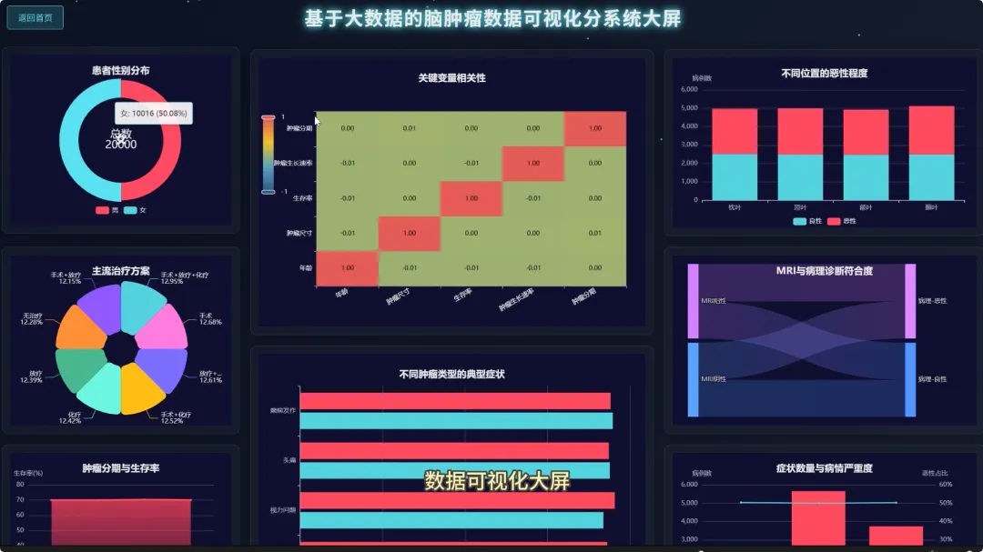 from pyspark.sql import SparkSessionfrom pyspark.sql.functions import col, count, avg, whenimport pandas as pdspark = SparkSession.builder.appName("BrainTumorAnalysis").getOrCreate()# 核心功能1:不同年龄段下的性别分布统计def analyze_gender_by_age_group(df): # 假设df包含'Age'和'Gender'列 # 将年龄分箱 df_with_age_group = df.withColumn("Age_Group", when((col("Age") >= 0) & (col("Age") < 18), "少年") .when((col("Age") >= 18) & (col("Age") < 40), "青年") .when((col("Age") >= 40) & (col("Age") < 60), "中年") .otherwise("老年")) # 按年龄段和性别分组计数 result_df = df_with_age_group.groupBy("Age_Group", "Gender").agg(count("*").alias("Patient_Count")) result_df.show() return result_df# 核心功能2:不同治疗方案对生存率的影响分析def analyze_survival_by_treatment(df): # 假设df包含'Surgery', 'Radiation', 'Chemotherapy', 'Survival_Rate'列 # 创建治疗方案组合列 df_with_treatment = df.withColumn("Treatment_Plan", when(col("Surgery") == "Yes", "手术") .otherwise("") + when(col("Radiation") == "Yes", "+放疗") .otherwise("") + when(col("Chemotherapy") == "Yes", "+化疗") .otherwise("")) # 按治疗方案分组,计算平均生存率 result_df = df_with_treatment.groupBy("Treatment_Plan").agg(avg("Survival_Rate").alias("Avg_Survival_Rate")) result_df.show() return result_df# 核心功能3:关键数值变量间的相关性分析def analyze_correlation_of_key_factors(df): # 假设df包含'Age', 'Tumor_Size', 'Survival_Rate', 'Tumor_Growth_Rate'列 # 选择关键数值列并转换为Pandas DataFrame以进行相关性计算 key_factors_df = df.select("Age", "Tumor_Size", "Survival_Rate", "Tumor_Growth_Rate").na.drop() pandas_df = key_factors_df.toPandas() # 使用Pandas计算皮尔逊相关系数矩阵 correlation_matrix = pandas_df.corr() print("关键数值变量相关性矩阵:") print(correlation_matrix) return correlation_matrix