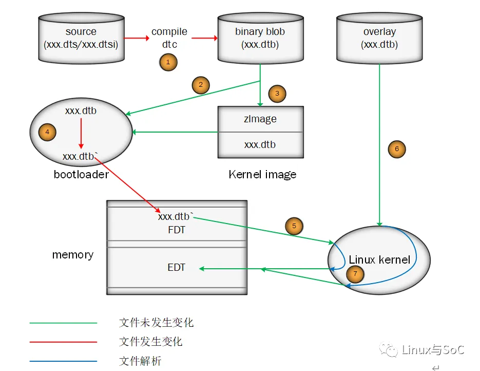 dtb文件可独立于kernel镜像,亦可以追加到zImage镜像之后,由U-Boot将其复制加载到memory。