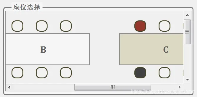选择框内桌子数量,大小,样式以及每个椅子位置都是可变的,例如我们可以将桌子颜色和是否圆角改变: