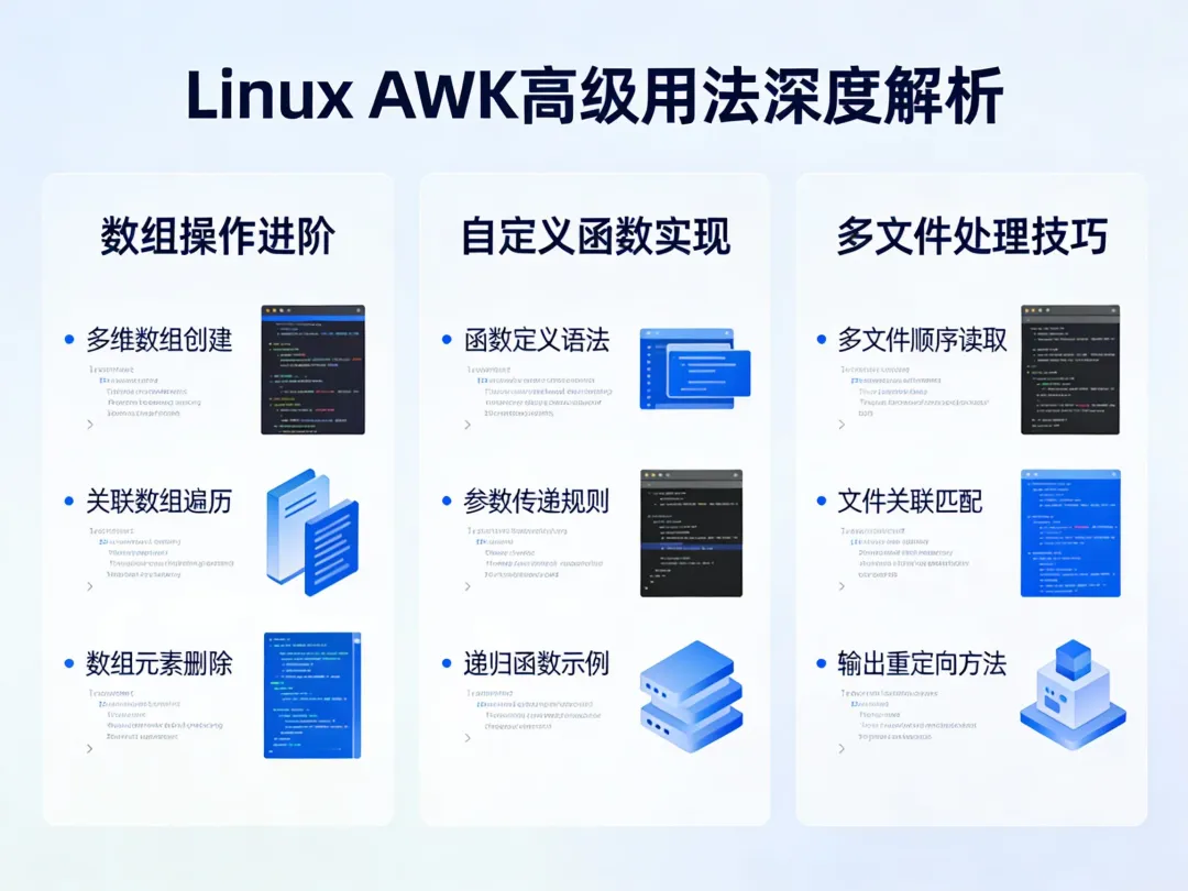 AWK 不仅仅是一个文本处理工具,它是一门完整的编程语言。以下是 AWK 的高级特性分类:#!/bin/bash