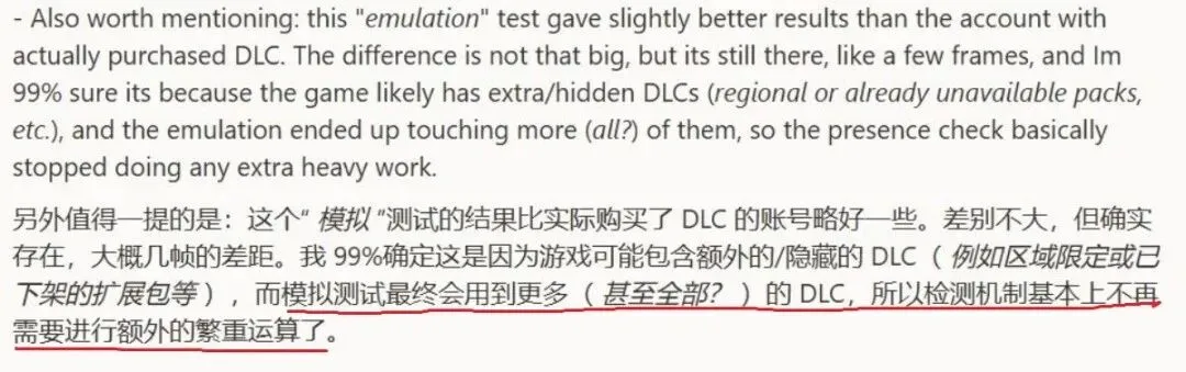自制模组作为验证:该用户制作了一个模组,使游戏误认为玩家拥有全部DLC,随后观察到性能立即得到改善。