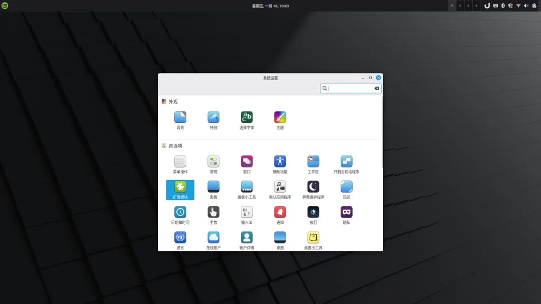 LinuxMint系统默认的Cinnamon桌面视觉效果中规中矩,并不是非常出众的,但这并不影响它的稳定性。