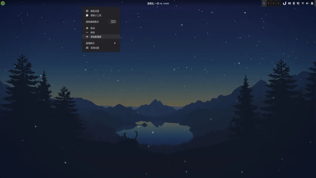 在顶部面板右键,在右键菜单中选择”添加新面板“,将面板添加到桌面底部位置。