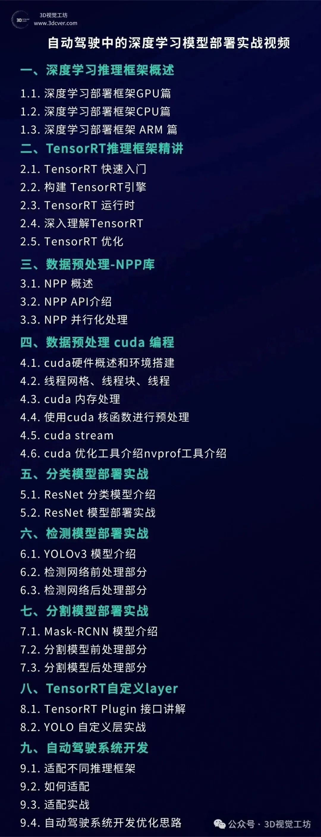 本视频教程以3D点云深度学习为主,对Point-based和Voxel-based系列的3D目标检测网络架构进行系统剖析和代码梳理,助力各位同学在点云深度学习更快的入门和更深的理解。