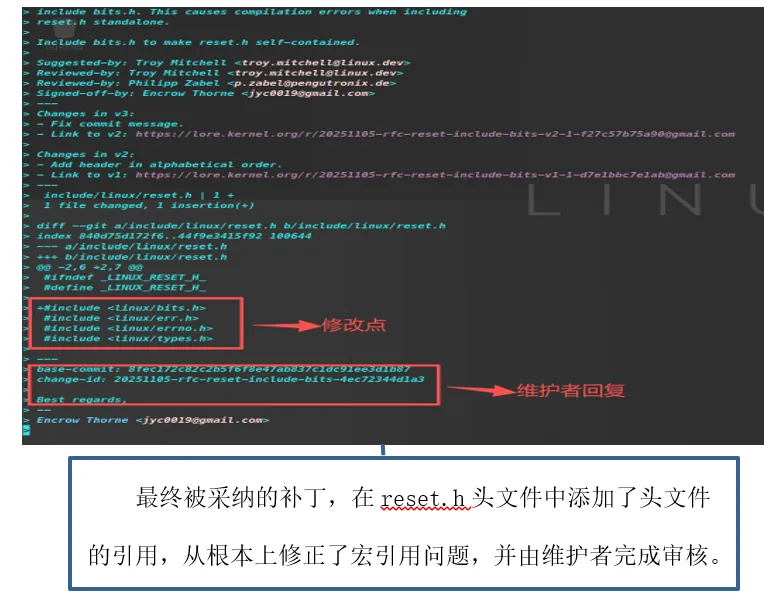 他最初提交的补丁并未被直接接受,内核维护者敏锐地指出,问题根源并非表面的头文件缺失,而是更深层次的宏引用方式不合理。在维护者的专业指导下,贾永超深入剖析代码依赖关系,实现了从单纯“解决问题”到寻求“最优解”的飞跃,通过修正相关头文件本身,从根本上消除了隐患。