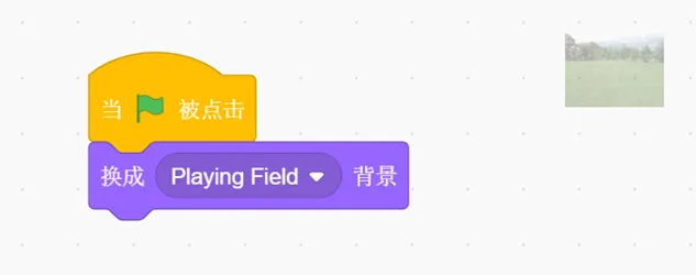 (1)点击绿旗,背景换成Playing Field。