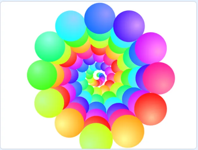(2)使用图章或者克隆,绘制上图所示的图案,注意只有一个Ball角色;
