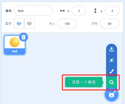(1)删除默认角色小猫,添加角色Ball;