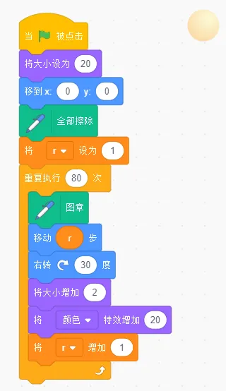 (1)角色Ball大小设为20,移到屏幕中心作为起点,清空屏幕;
