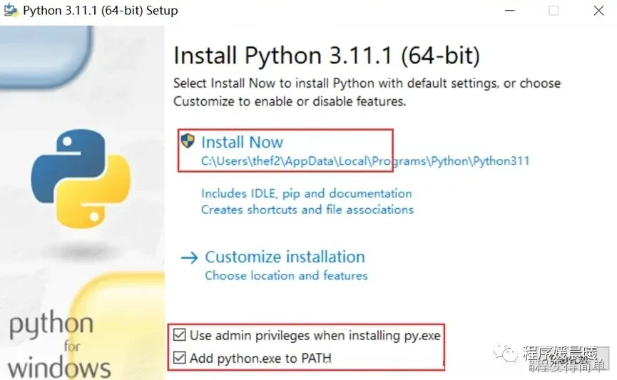 Windows操作系统允许创建多个账号用户,每个账户有自己的使用权限,Install Now默认当前账户安装,安装路径和内容是默认的,其它非管理员账户登录到windows系统不能使用这个账户安装的python。