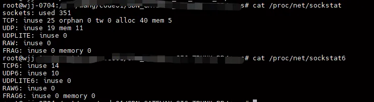 cat /proc/net/sockstatcat /proc/net/sockstat6