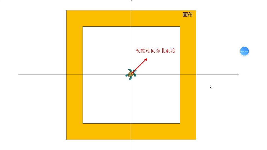 小乌龟初始位置是在画布的正中央,横轴为x轴,纵轴为y,初始坐标就为(0,0)。并且小乌龟爬动或者移动都是以像素(px)为单位。