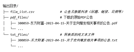- • PDF文件下载:根据元数据中的链接,并发下载公告PDF文件至本地。