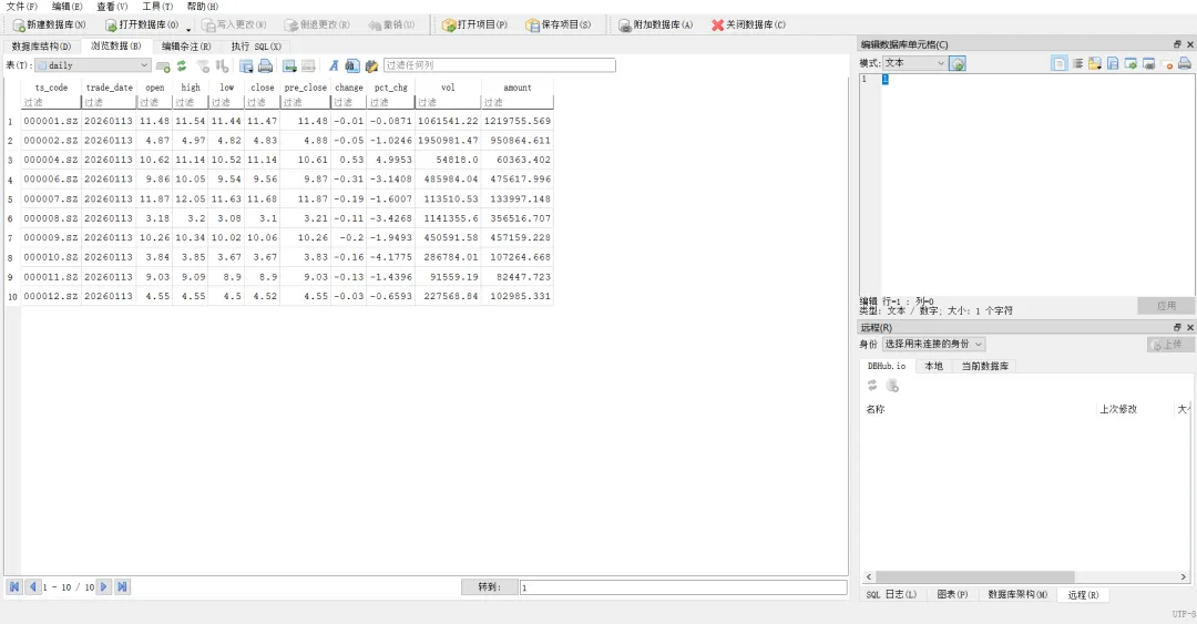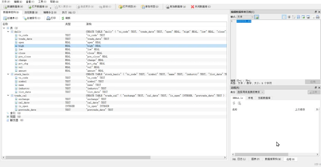 可使用SQLite可视化工具(如SQLite Studio、Navicat)打开ts_stock.db,查看以下三张表: