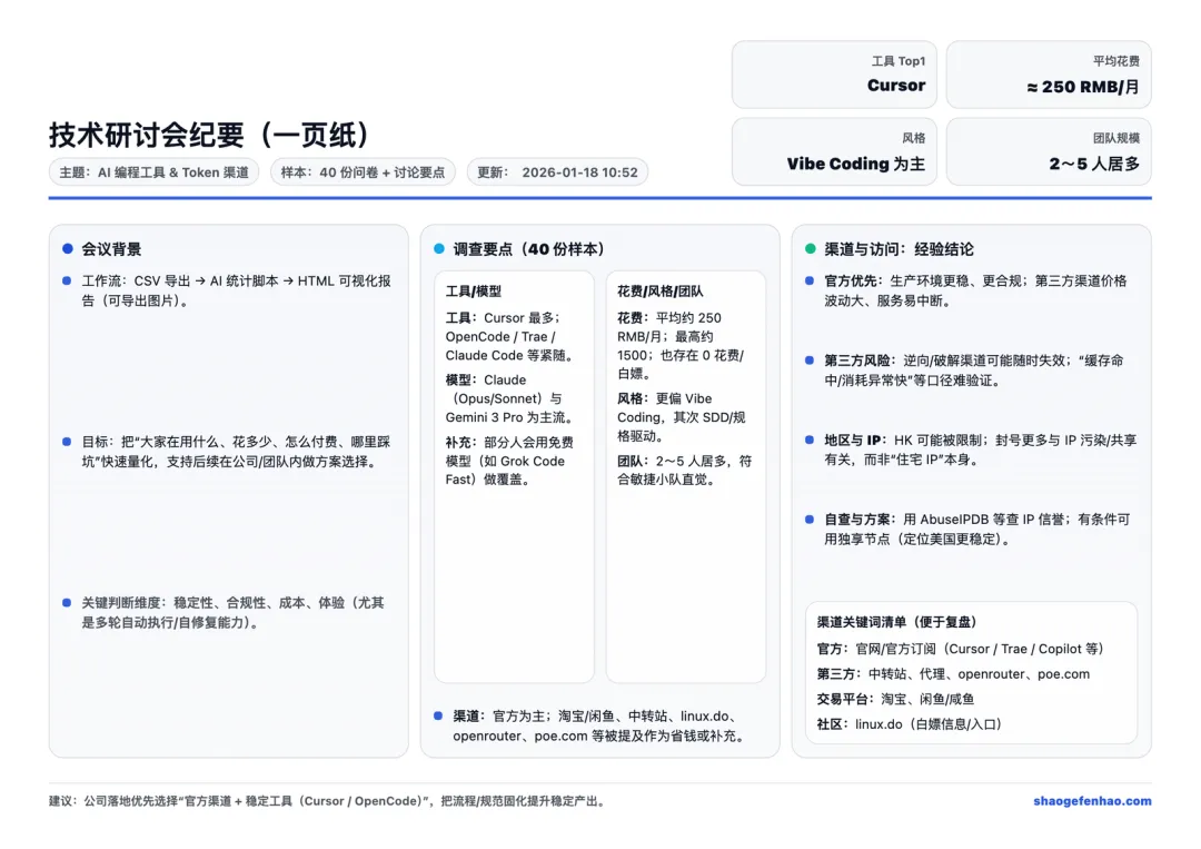 - 省钱渠道可以用,但要接受“短期、不可控、随时失效”的现实;更值得投入的是把“工作策略/规范/流程”固化下来,让产出更稳定。