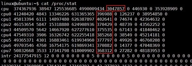 这些命令都是通过读取 /proc/stat 伪文件中的原始 CPU 统计信息来计算 iowait 和其他 CPU 统计信息的