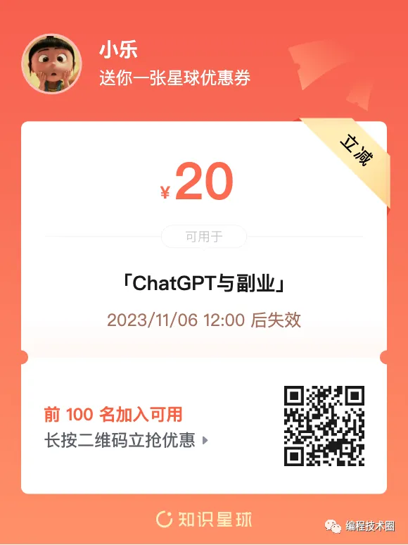 最后,再次推荐下我们的AI星球: 为了跟上AI时代我干了一件事儿,我创建了一个知识星球社群:ChartGPT与副业。想带着大家一起探索ChatGPT和新的AI时代。